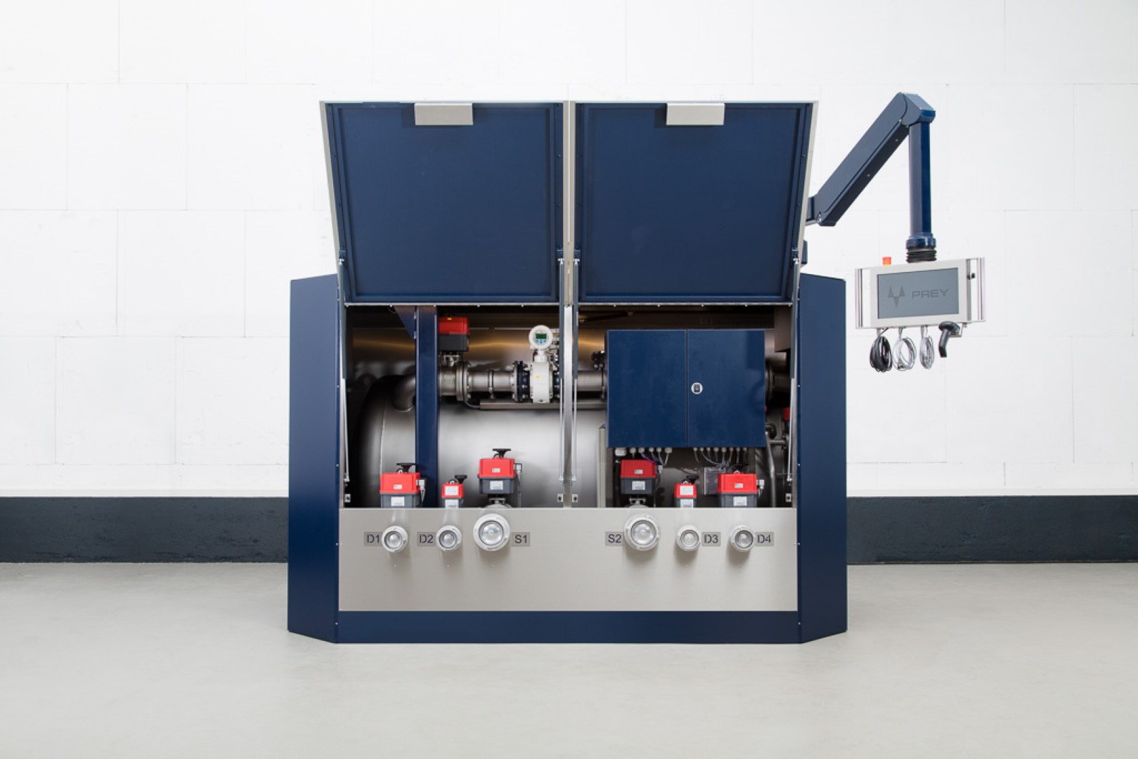 Der neue Pumpenprüfstand für Volumenströme bis 4000 l/min von PREY – kurz PPS 4000 – erreicht ein Höchstmaß an Genauigkeit, Bedienerfreundlichkeit und Automatisierung. Er verfügt über einen Druckkessel aus Edelstahl, ist entsprechend ortsungebunden und mit Grundabmessungen von knapp 3 m auf 1,9 m am Ende jeder Fahrzeughalle platzierbar.