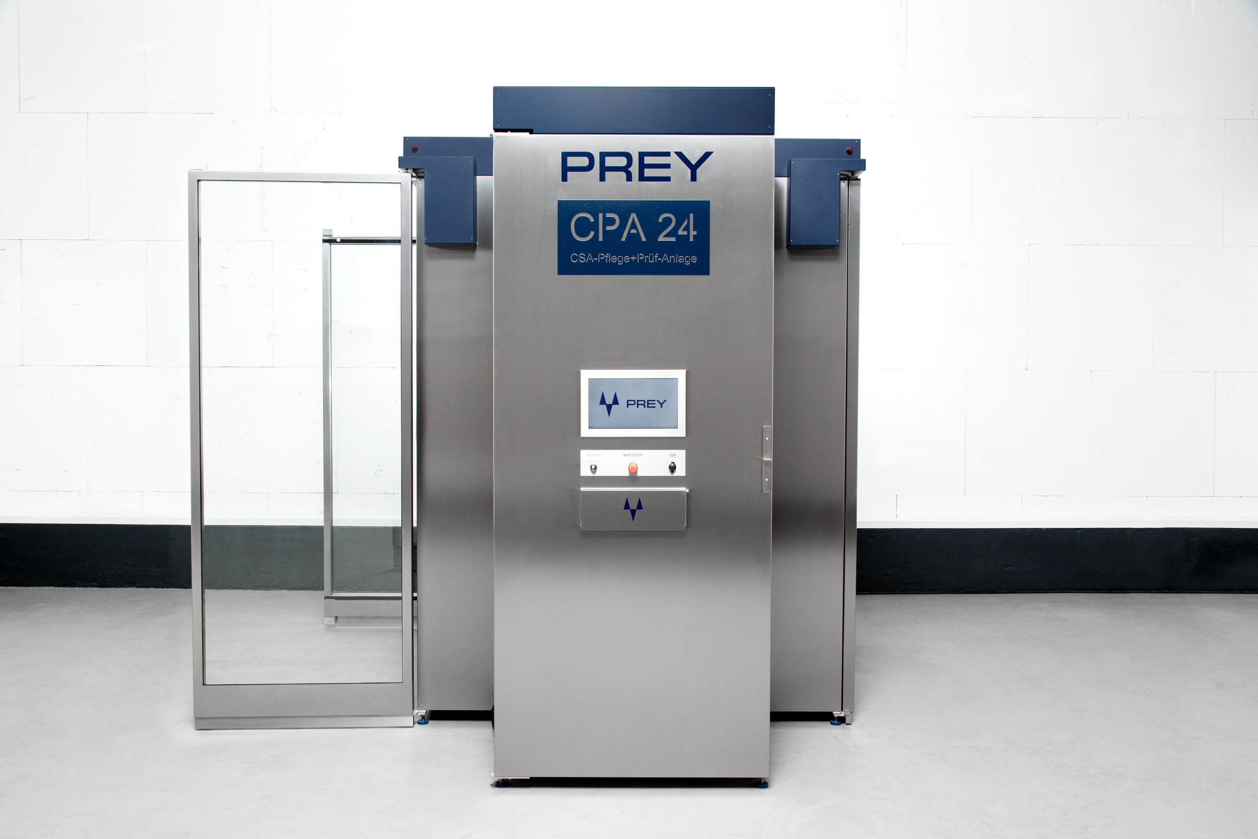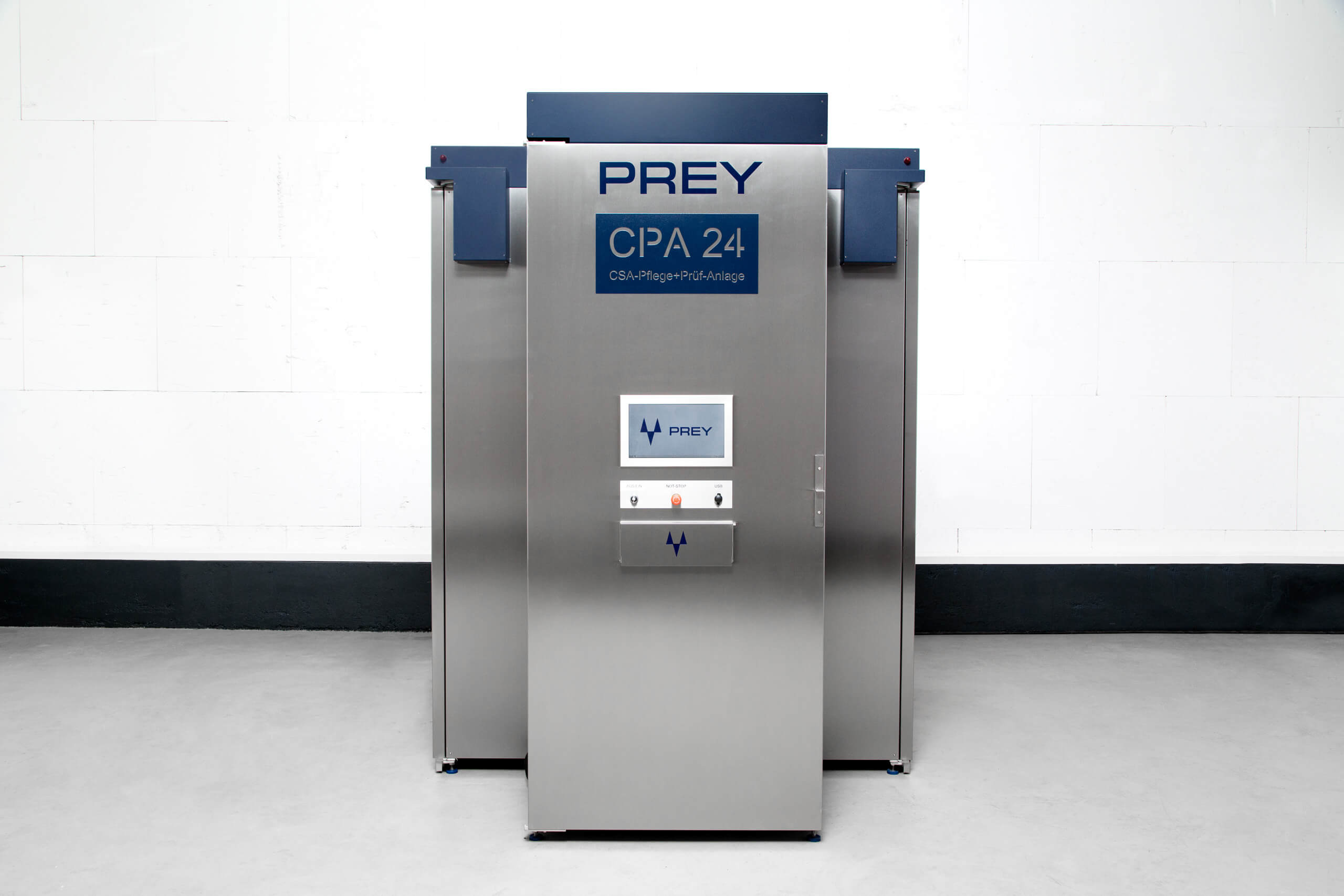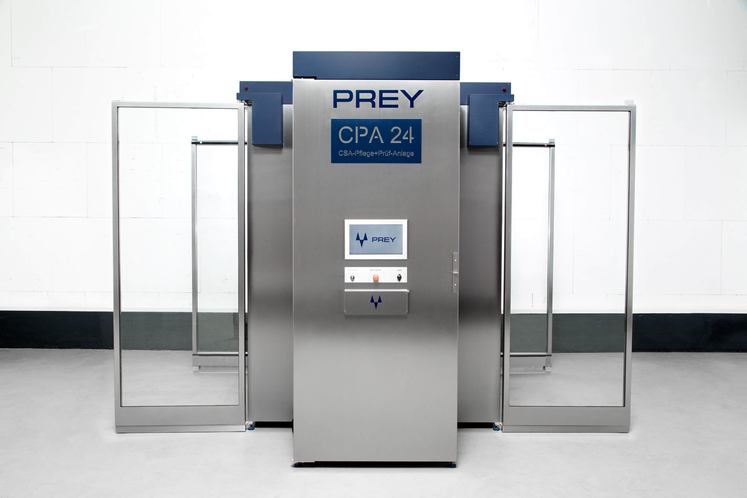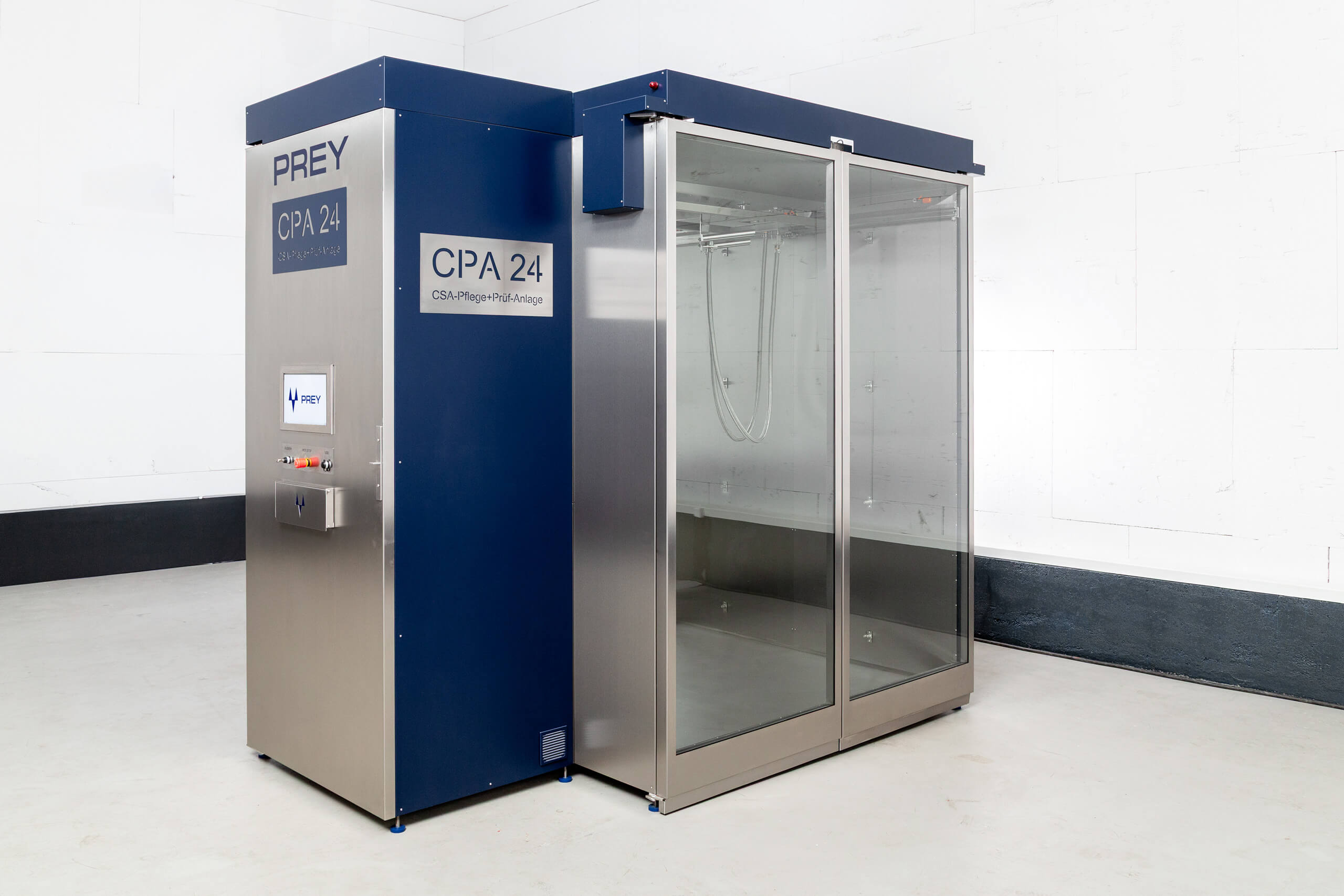 Die CPA 24 ist die erste und bislang einzige Anlage, die Chemikalienschutzanzüge nicht nur vollautomatisch pflegt, sondern im selben Prozess auch ihre Dichtigkeit prüft. Möglich wird dies durch eine speziell entwickelte, thermisch geführte Dampfreinigung, -desinfektion und Trocknung, bei der Luft, Wasser und Dampf über die Auslassöffnungen der Anzüge geführt werden – mit und ohne Reinigungs- und Desinfektionsmedien.