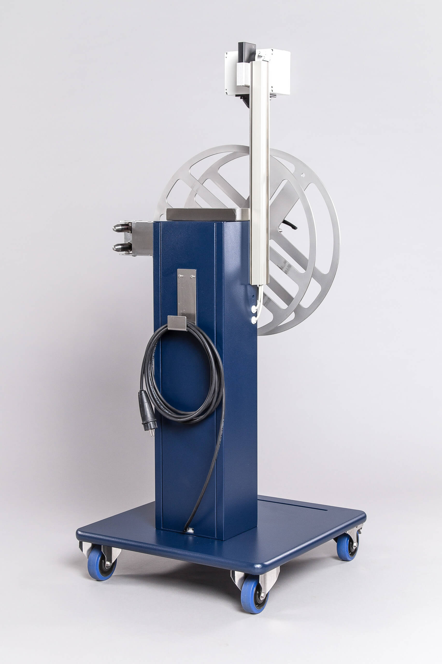 Neben dem leistungsstarken Getriebemotor ist der ASW mit einer Sicherheitsschaltanlage mit Frequenzumrichter sowie einer großflächigen, stabilen Basis für maximale Standfestigkeit (auch beim Wickeln schwerer Schläuche) ausgestattet.