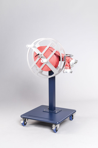 Der Kraftprotz unter den Schlauchwicklern mit extra großen, einsehbaren Haspelscheiben aus Edelstahl für Feuerwehrdruckschläuche der Größen A, B, C, D und F bis 40 m Länge, bevorzugt für den Einsatz in Ölraffinerien und –feldern, Chemikalienwerken und sonstigen Sondereinsatzgebieten sowie Ländern mit A- und/oder F-Schläuchen von über 20 m Länge.