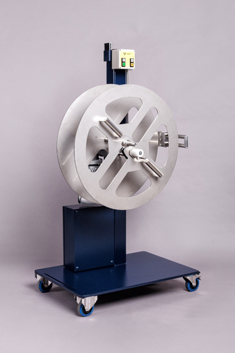 Der mobile Mammut-Schlauch-Wickler von PREY – kurz MSW – ist der größte Serienwickler seiner Art. Er ist neben den großen Haspelscheiben für entsprechende Wickeldurchmesser mit einem extrem leistungsstarken Getriebemotor, einer Sicherheitsschaltanlage mit Frequenzumrichter sowie einer großflächigen und besonders schweren und stabilen Basis ausgestattet, welche zur Sicherung der Standfestigkeit auch beim Wickeln schwerster Schläuche dient.