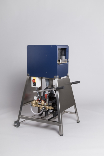 Die mobile Schlauch-Wasch-Maschine von PREY – kurz SWM – mit Hochdrucktechnik ist die wirtschaftlichste und robusteste ihrer Art. Die Druckleitungen sind mit praktisch wartungsfreien Flachstrahldüsen ausgestattet. Entsprechend verfügt das Gehäuse über keinerlei bewegliche Teile in der Nasszelle.