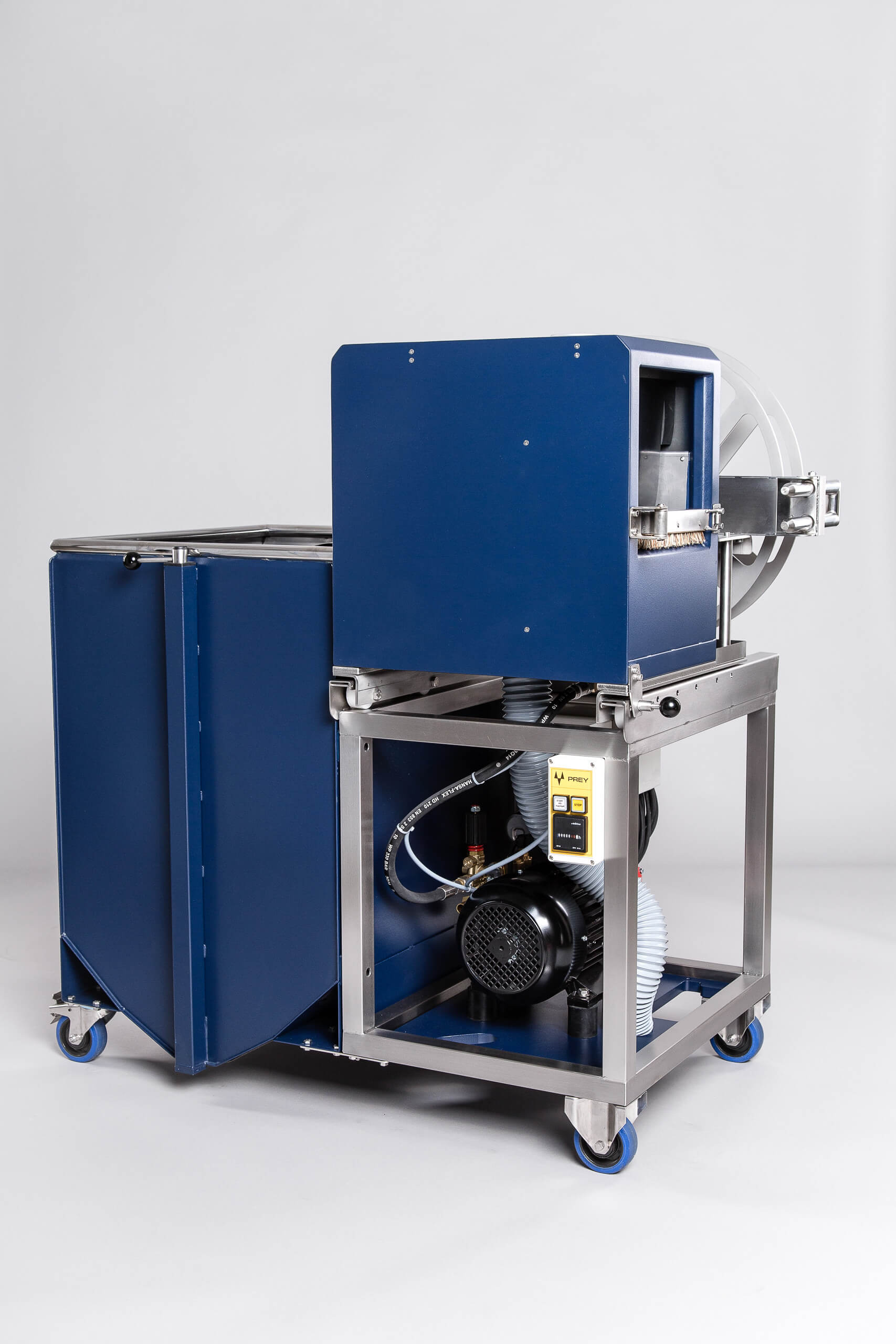 Das Schlauchpflege-Kombigerät von PREY – kurz VWW – ist nach seinen Funktionseinheiten benannt und vereint die zwei Schlauchpflegegrundfunktionen Vorweichen und Waschen mit der Wickelfunktion. Dabei ist dieses Kombigerät in seiner Kategorie an Material- und Verarbeitungsqualität, Funktionalität, Ergonomie, Effizienz, Effektivität, Raumausnutzung und Wirtschaftlichkeit nicht zu übertreffen.