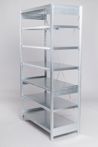 Das Material-Ersatzteile-Regal – kurz MER – dient als logische Erweiterung der PREY-Produktpalette zur Ablage aller üblicher Gegenstände in Schlauchpflegewerkstätten, für die keine gesonderten Lager- bzw. Ablagevorrichtungen an Schlauchpflegeanlagen vorgesehen sind. Es besteht aus speziellen Kantprofilen in verzinkter Ausführung mit Kreuzverband.